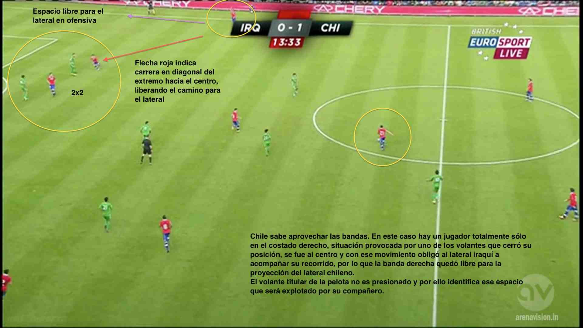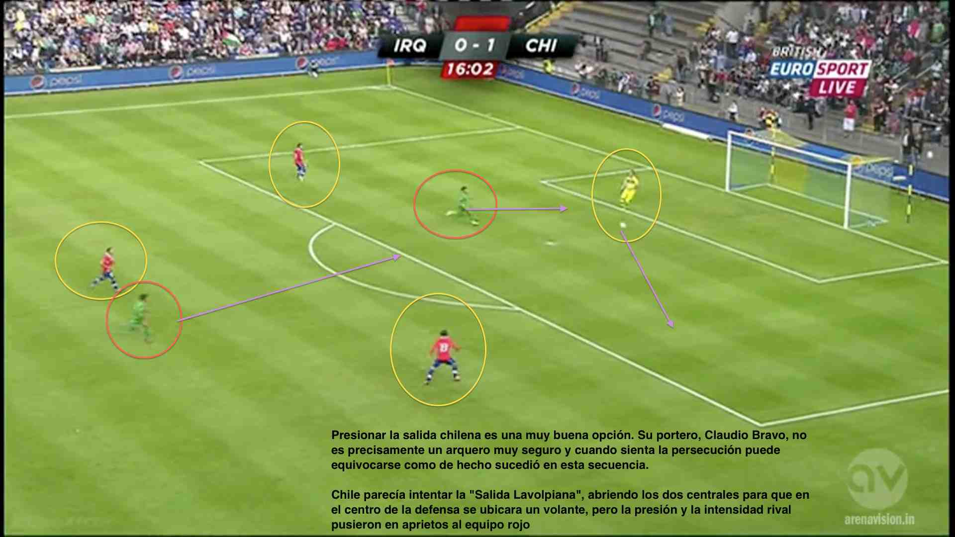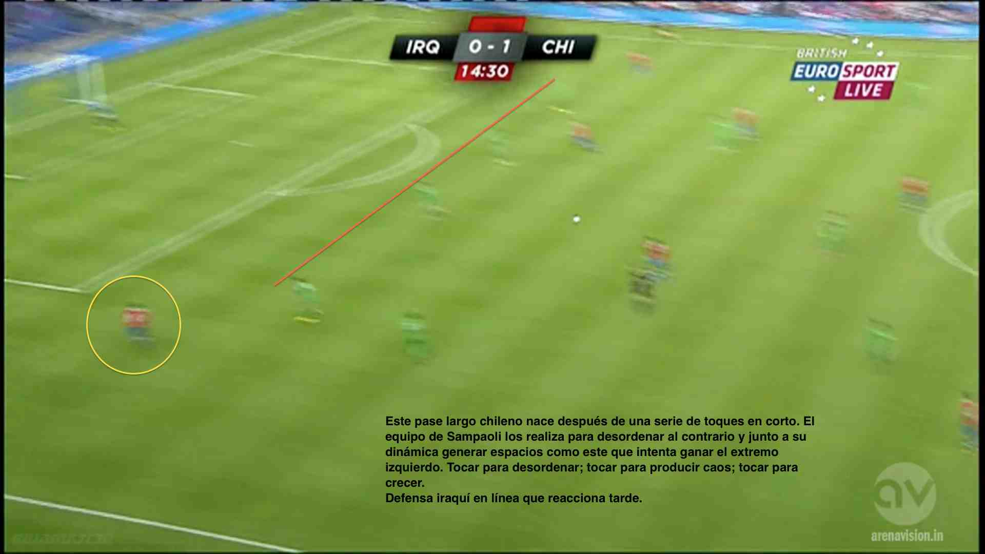 En su última presentación, el equipo austral goleó seis goles por cero a un inocente Irak. La idea de esta entrega es mostrar algunas conductas de esa versión chilena, no sin antes recordar que Venezuela no es Irak, y que además, a pesar de lo que muchos creen, un partido amistoso, jugado hace ya casi tres semanas, poco puede influir en lo que será el encuentro oficial en Santiago. Con ello pretendo darle mucha importancia al momento de los jugadores, a las emociones y nervios que genera un partido como este en el que se puede definir el destino de Chile (si gana estará casi clasificado al mundial) o la supervivencia de la Vinotinto (una derrota nos condena mientras que un resultado positivo sería oxígeno para el próximo enfrentamiento ante Perú en Puerto La Cruz).