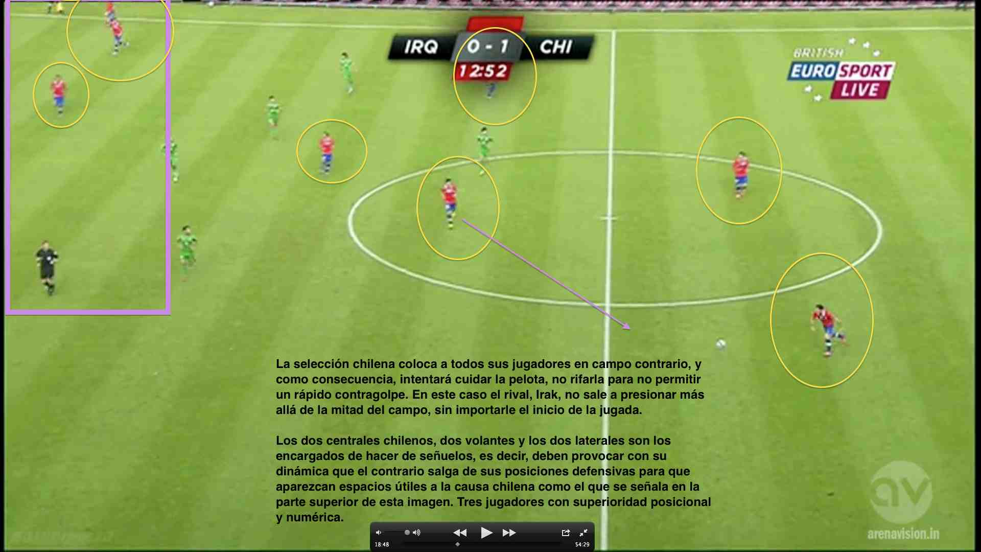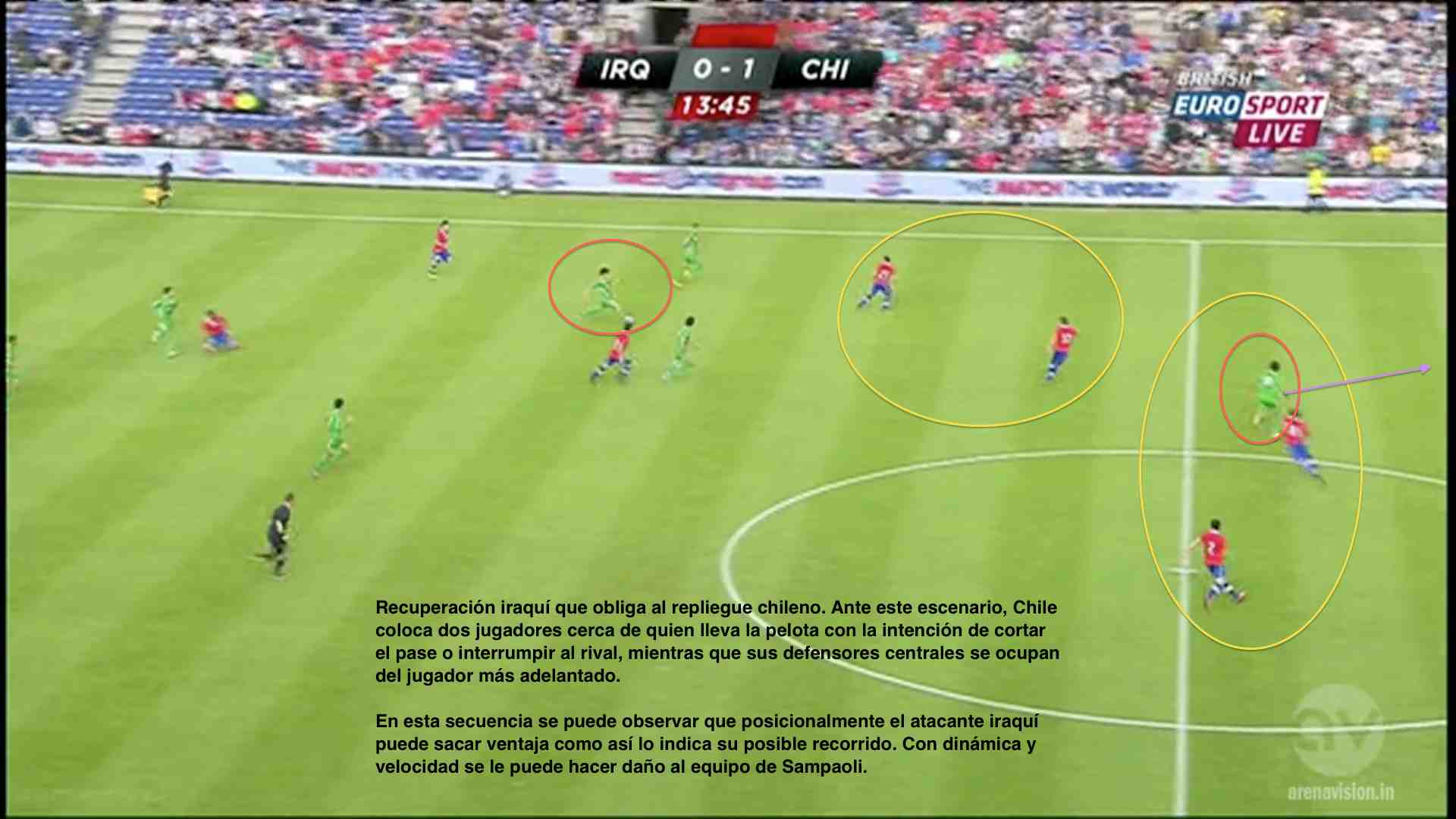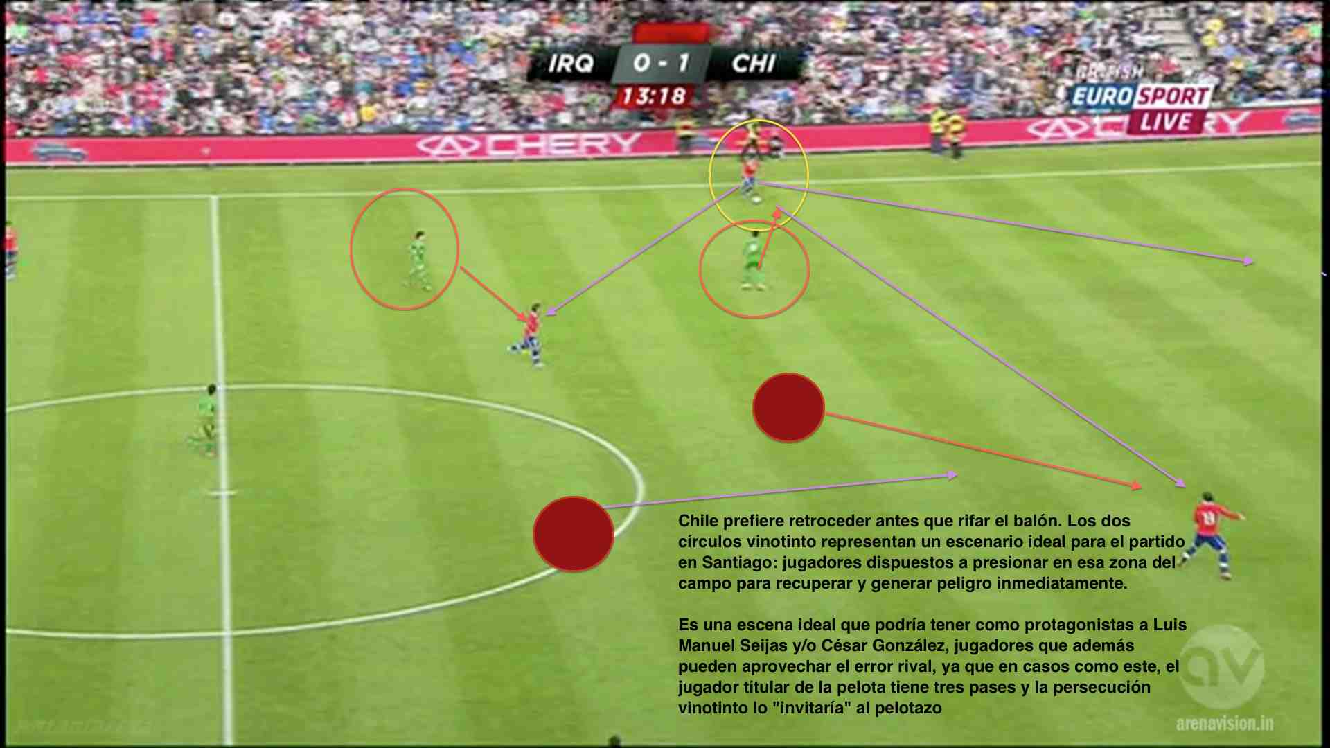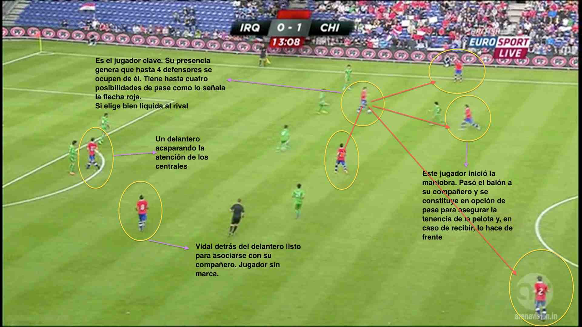 En su última presentación, el equipo austral goleó seis goles por cero a un inocente Irak. La idea de esta entrega es mostrar algunas conductas de esa versión chilena, no sin antes recordar que Venezuela no es Irak, y que además, a pesar de lo que muchos creen, un partido amistoso, jugado hace ya casi tres semanas, poco puede influir en lo que será el encuentro oficial en Santiago. Con ello pretendo darle mucha importancia al momento de los jugadores, a las emociones y nervios que genera un partido como este en el que se puede definir el destino de Chile (si gana estará casi clasificado al mundial) o la supervivencia de la Vinotinto (una derrota nos condena mientras que un resultado positivo sería oxígeno para el próximo enfrentamiento ante Perú en Puerto La Cruz).
