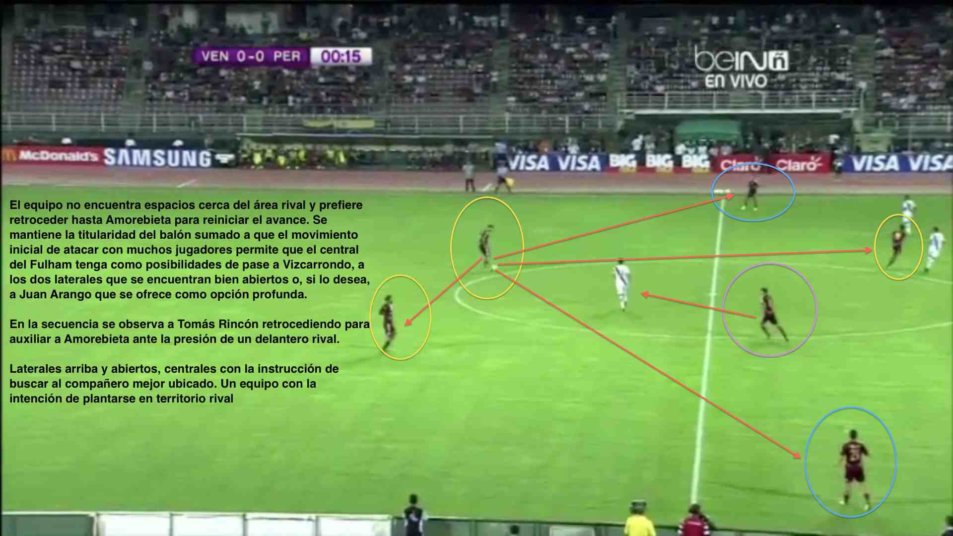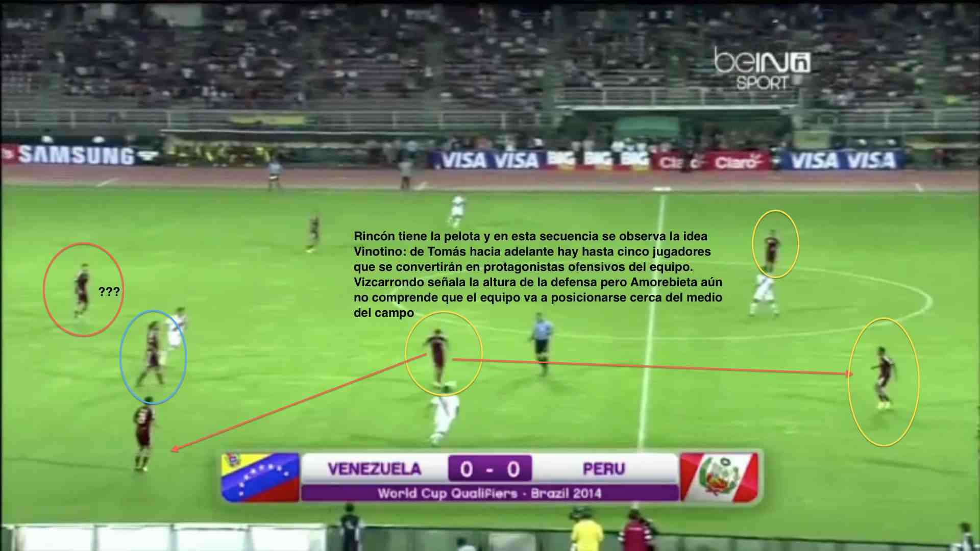 No voy a hablar sino de ubicación de jugadores. Esto lo hago sólo porque quienes seguramente estarán ante los paraguayos – Hernández; González, Vizcarrondo, Amorebieta y Rosales; Lucena; Otero, Orozco y Arango; Martínez y Aristeguieta – son futbolistas que ya han demostrado su capacidad para encarar un desafio en el rol de protagonistas principales. Son futbolistas que hacen que sucedan cosas; son justamente como impulsos eléctricos que activan una red neuronal.